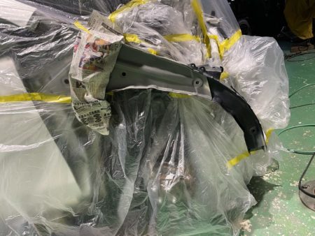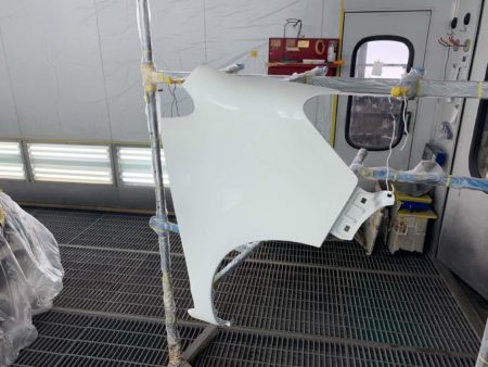 ▼交換するフロントバンパーとフロントフェンダーは弊社で下地処理をして塗装していきます。