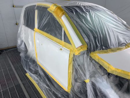 ▼ぼかし塗装のため、右フロントドアやピラーの部分を塗装します。