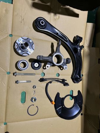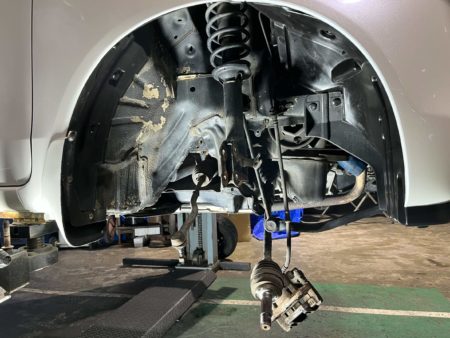 ▼ロアアームやナックルハブと呼ばれる足回り部品を交換します。