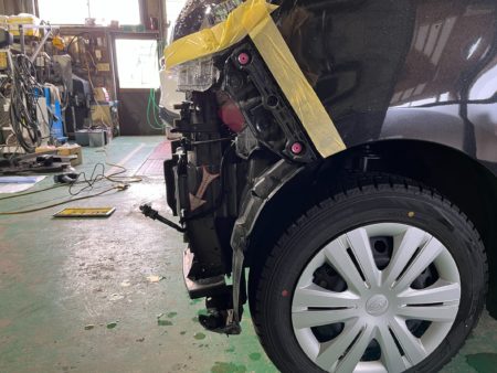 ラジエターサポート迄影響があり、鈑金修理をすることとなります。