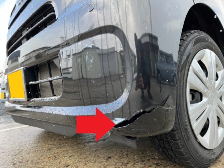 ▼ フロントバンパー下部をぶつけてしまっての損傷です。