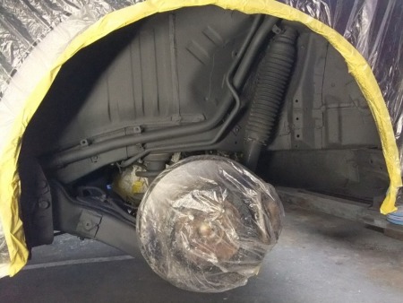 ▼ タイヤハウス内のサスペンション関連部品も綺麗に塩害ガードが塗布されました。