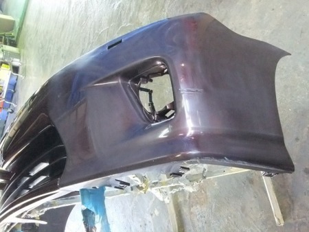▼塗料がしっかり乾燥したら、バンパーを組付け、塗装面をコンパウンドで磨きます。