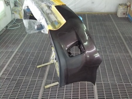 シリコンオフで脱脂をし、弊社で調色した塗料を吹き付けていきます。