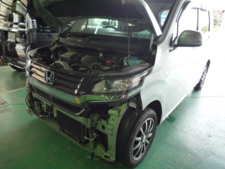 ▼キズの部分をサンダーなどで削り、パテで凹凸を埋めます。