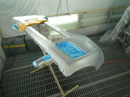 フロントバンパーと同様にパテを塗り、サフェーサーを吹き付け、下処理を完了します。