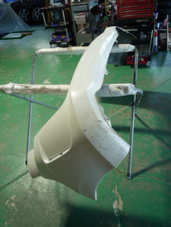 ▼ バンパーの裏側には土や埃ゴミ等、汚れがたくさんついているのでバンパーを外して水洗いしてから修理の作業を行います。