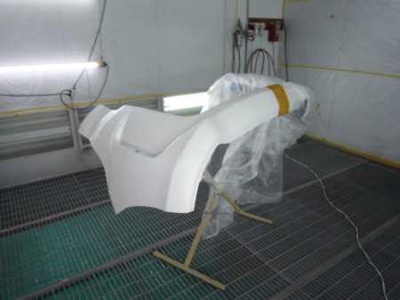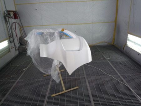 今回は白いサフェーサなので分かりにくいですが形成してから塗料の密着性を高めるためサフをいれ、ボディに色を合わせて塗装を行いました。