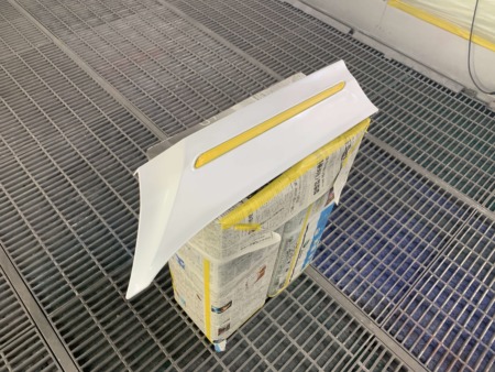 リアスポイラーが現車よりも色が白いものだったため、車に合わせて調色をして塗装しました。