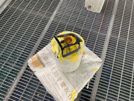▼ホワイト色を塗装するため、ブラックの部分はマスキングします。
