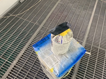 ▼ボディの色に合わせて調色した塗料を吹き付けます。