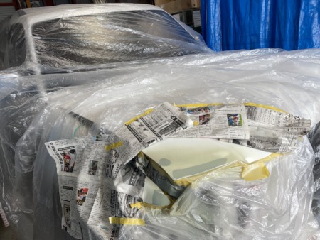 塗装面以外を塗料の飛散による汚れを防止する為に専用のビニールシートでマスキングをします。