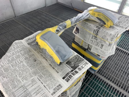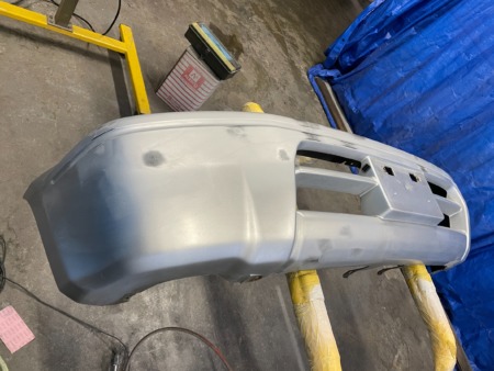 ▼ バンパーも一旦車体から取り外して傷の補修を行います。