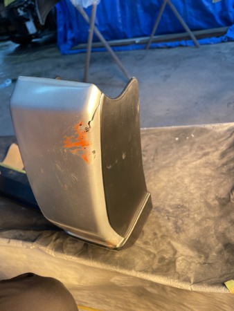 ▼ 黒の部分とシルバーの部分が割れていましたので黒の部分はラプター塗装をして修理、シルバーも塗装しました。