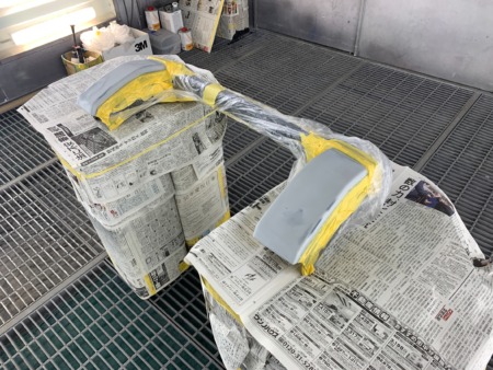 ▼ パテが乾燥したら研磨を数回繰り返して滑らかに仕上げ、下地処理の為のサフェーサを塗布します。
