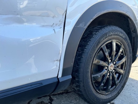 ▼フロントバンパーにはキズ、フェンダーとドアにはへこみがあります。