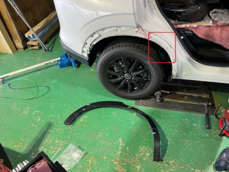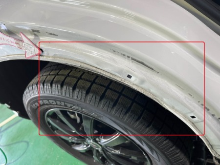 ▼リアドアからリアフェンダーにかけてもへこみが出来ていました。