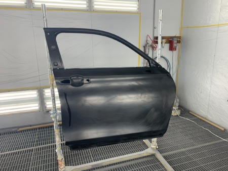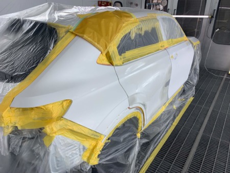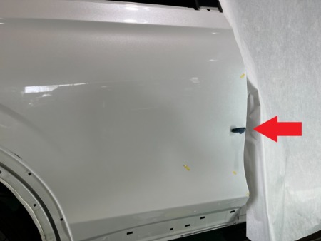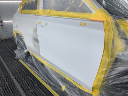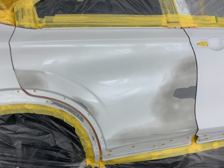 ▼フロントドアからリアクォーターまで塗装します。