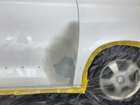 ▼ 傷の補修を完了したら塗装前の下地処理の為の足付けと脱脂を行ってから塗装をします。