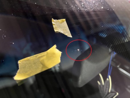 飛び石により、フロントガラスに小さなキズができてしまったそうです。