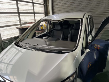 ▼フロントガラス上部が損傷箇所です。