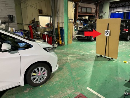 ▼まず静的エーミングといって、専用のターゲットボードを使って室内で調整することからはじめます。