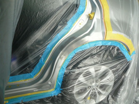 左の後ろのドアを開けたところのクオーターパネルのサビが気になるとのことでご用命いただきました。