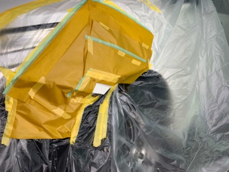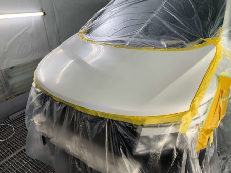 シリコンオフで脱脂をしたら、調色した塗料を吹き付けていきます。