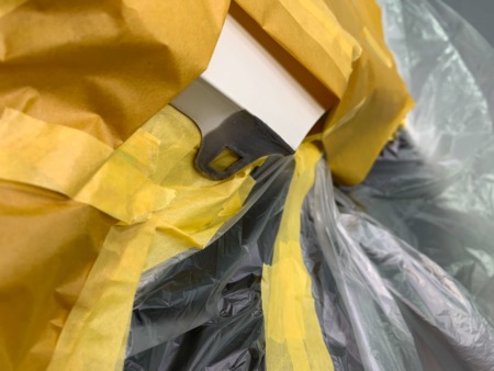 ▼塗装面全体をペーパーがけして塗料の密着が良くなるよう下準備をします。