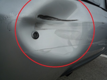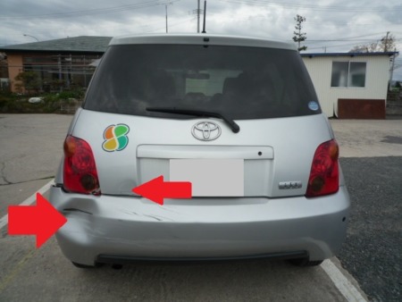 ▼ リアバンパーへの衝撃が大きくバンパーの凹みが凄いことになっています。