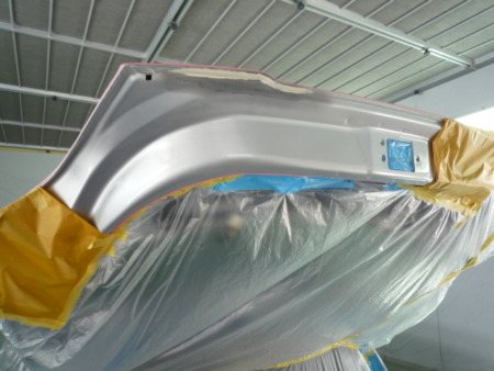 ▼ 車のカラーコードから調色を行いベースカラー塗装⇒クリア塗装の順で塗装をしていきます。
