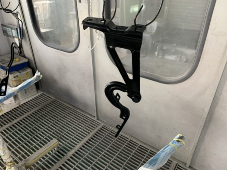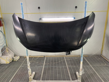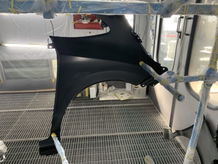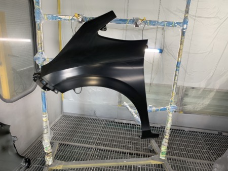 ▼左のフェンダーパネルです。無塗装の状態で届くので弊社で下地処理を行い、塗装します。