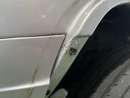 ▼ オーバーフェンダーを取り外してみるとフェンダーにも錆びが出ている状態です。