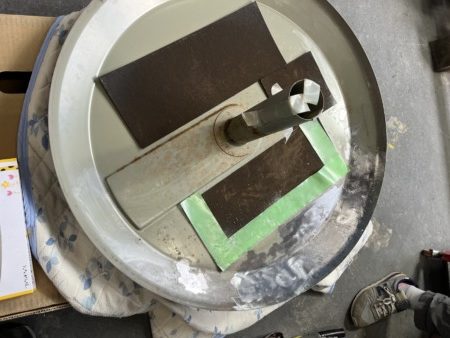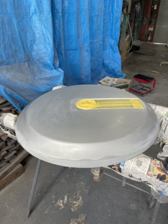 ▼ スペアタイヤのカバーは最初シルバーのスプレーで塗られていたのをシンナーで落としました。