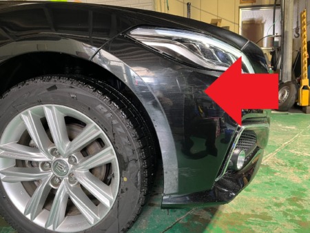 ▼ フロントバンパーを擦ってしまっての修理になります。