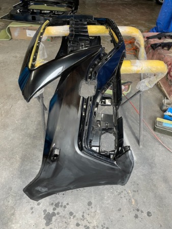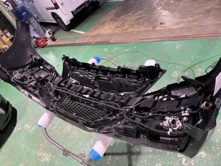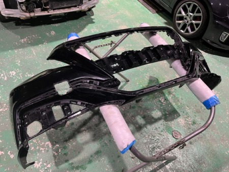 バンパーは一旦車体から取り外して単体で補修を行って行きます。