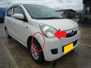 事故損傷!キズ・凹みの板金修理事例(ダイハツ・ミラ 米沢市)